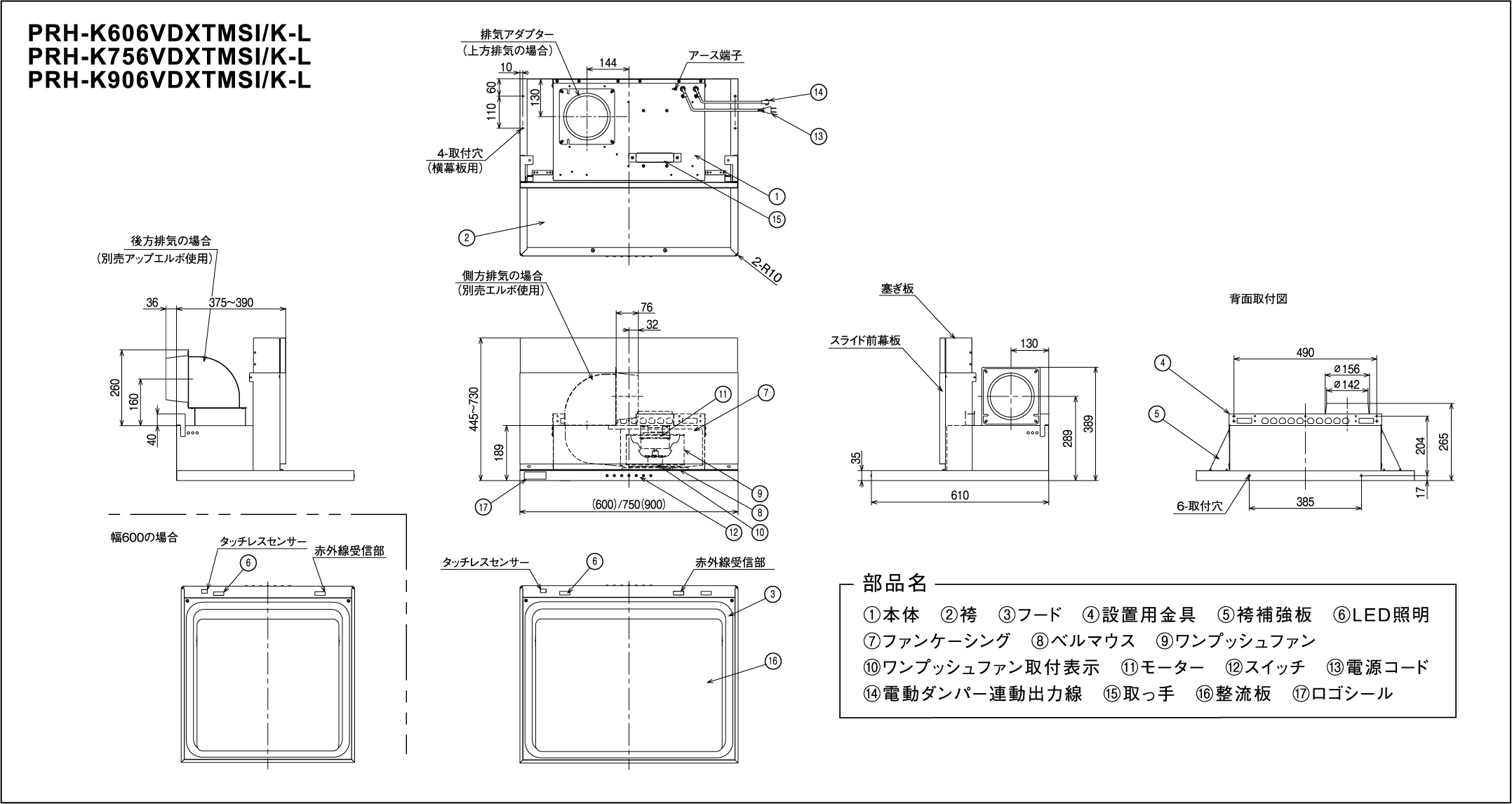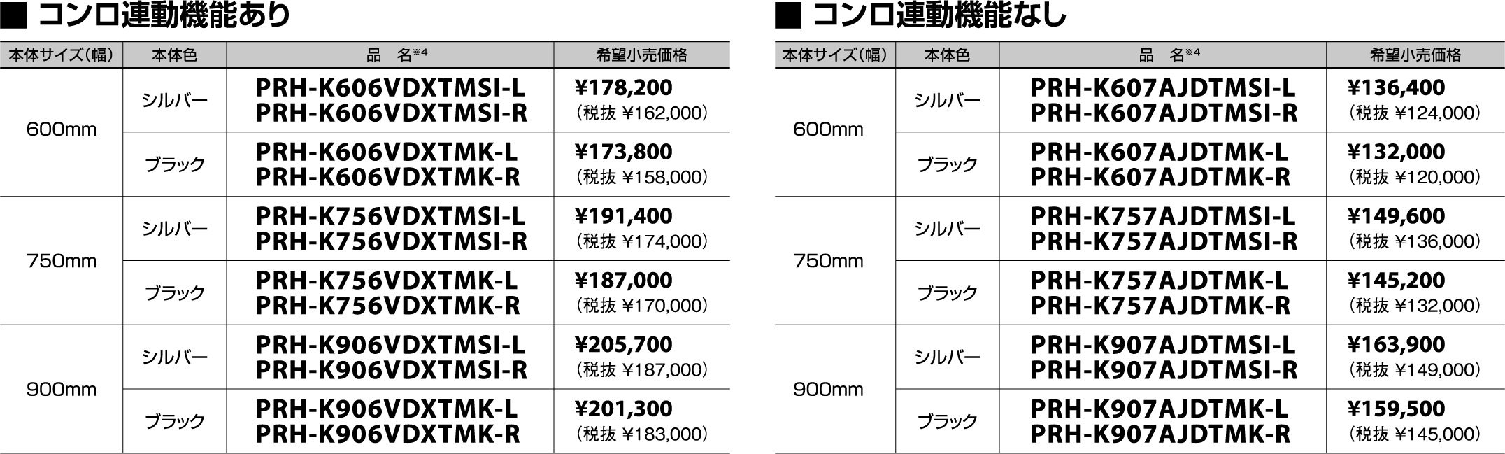 PRH-K606/756/906VDXシリーズ (コンロ連動あり) 税込 178,200円(税抜 162,000円)~