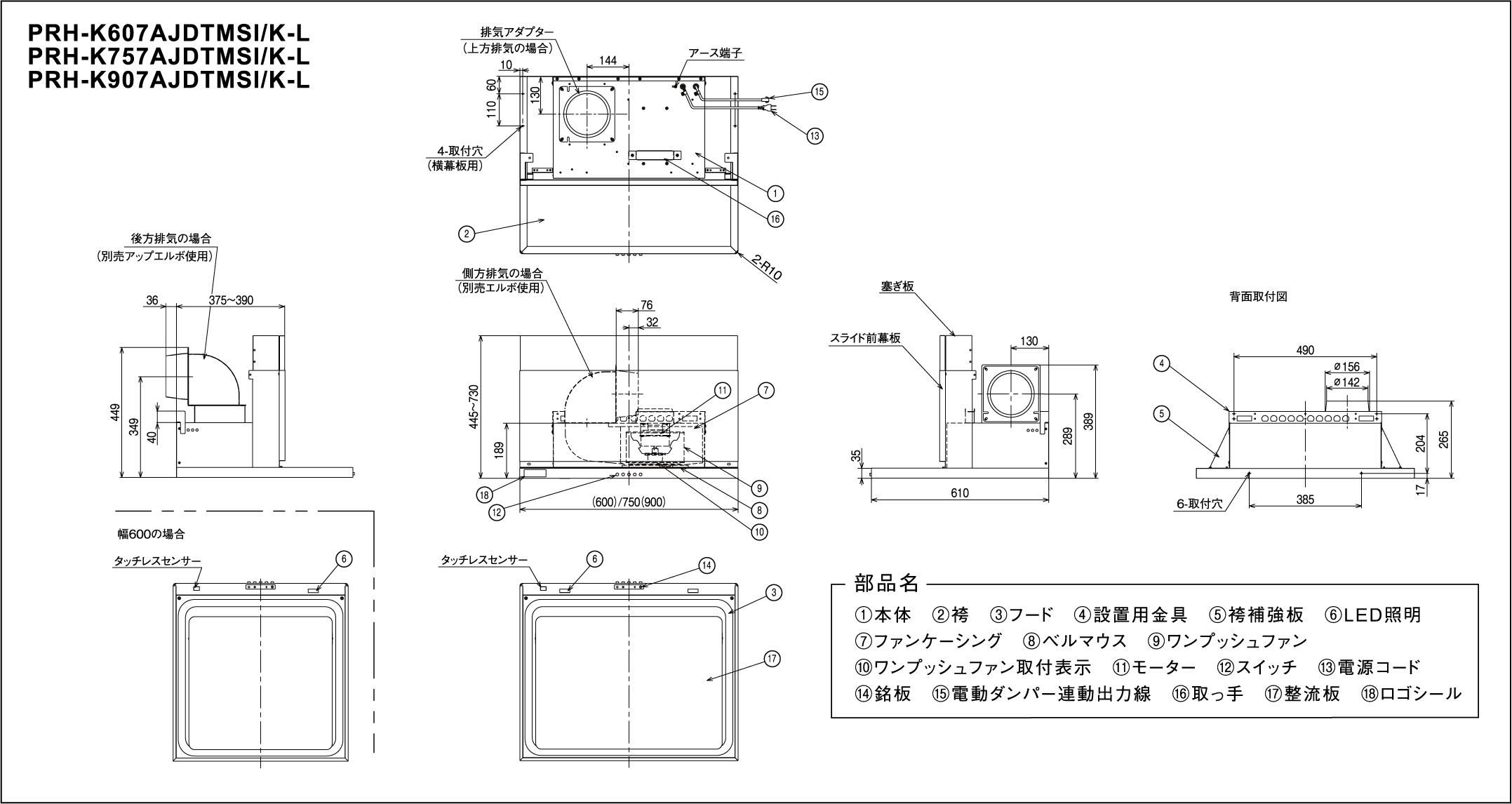 PRH-K607/757/907AJDシリーズ (コンロ連動なし) 税込 136,400円(税抜 124,000円)~