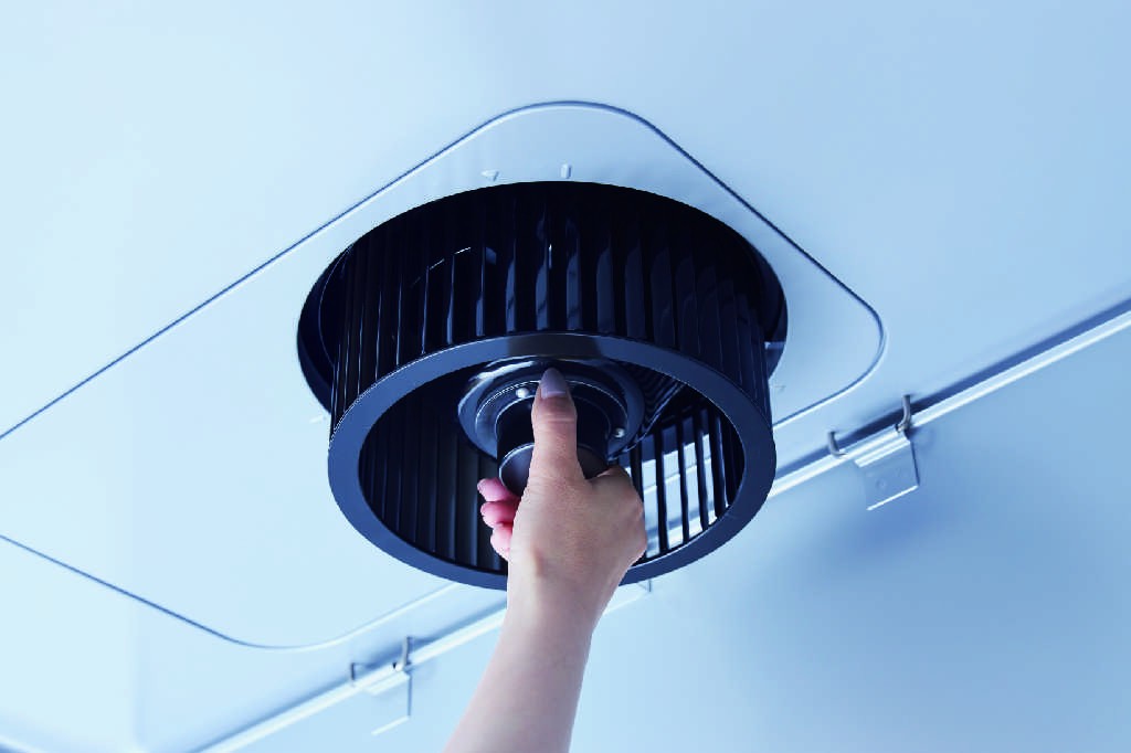 改正建築基準法に基づくシックハウス対策のひとつとして、住宅の場合1 時間あたりに部屋の空気の半分を入れ替える機械換気設備の設置が義務付けられています。レンジフードを24 時間(常時)換気対応にすることも可能で、新たなダクト